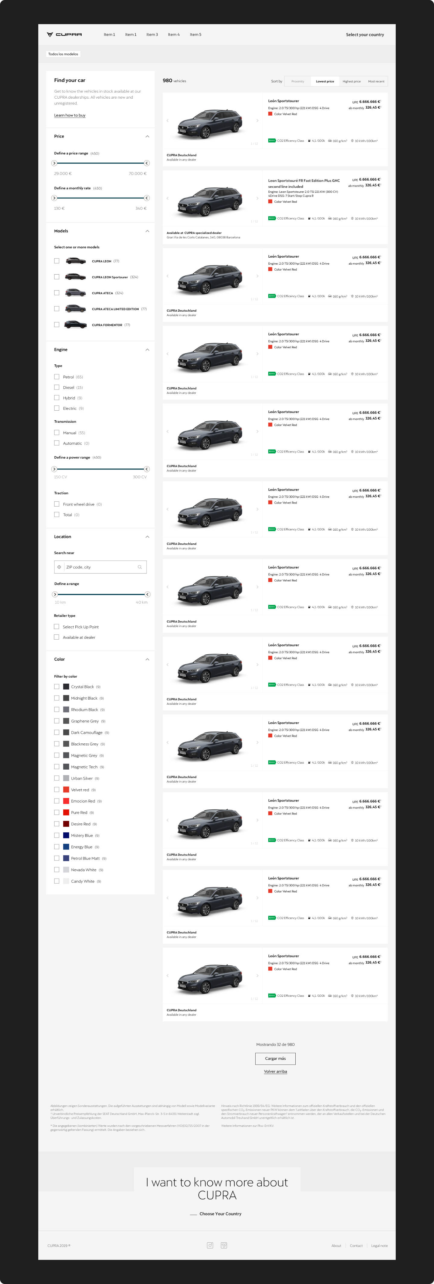 This project reinforced the importance of collaboration when designing complex systems that span multiple regions and teams. It also highlighted the value of iterative testing in refining features like filtering options and ensuring they meet user expectations. Finally, working on CUPRA’s first electric car launch underscored how UX design can play a critical role in driving innovation within traditional industries like automotive retail.