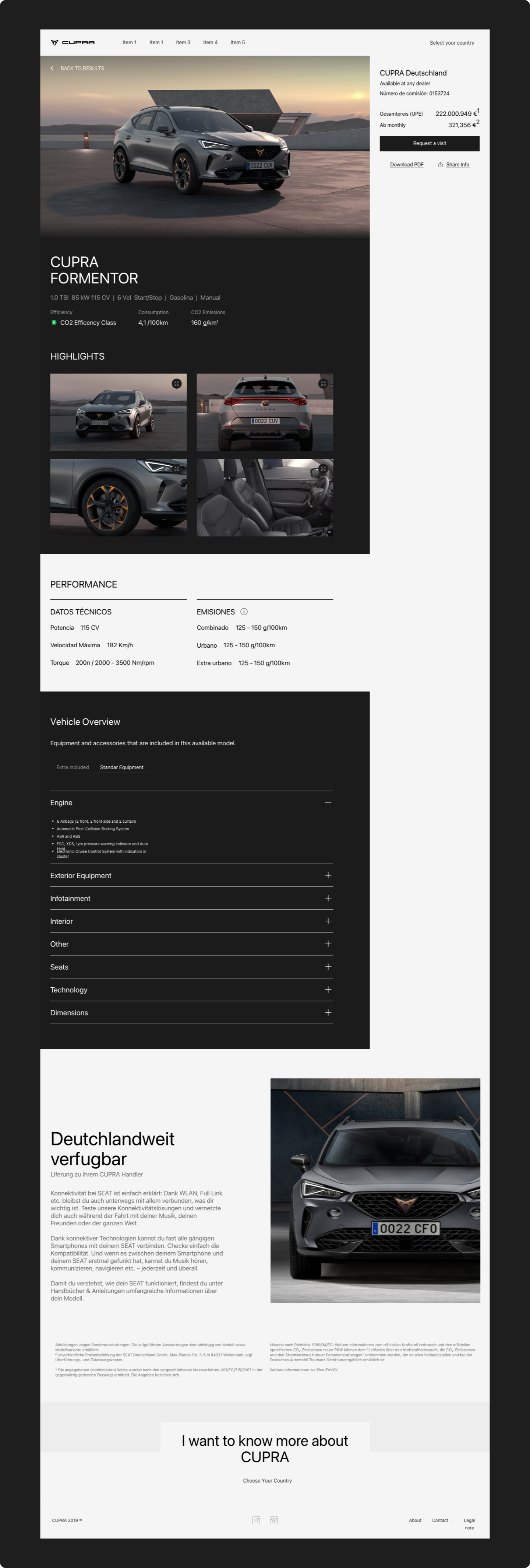 Once a car was selected, users were directed to a product page featuring comprehensive vehicle details. This page was designed to provide all necessary information required by Volkswagen Group standards while maintaining a clean and intuitive layout.